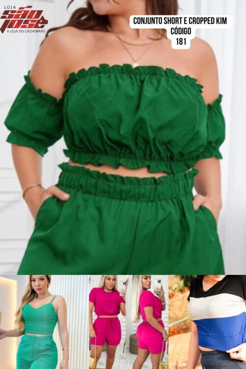 UN CONJUNTO SHORT E BLUSA CREPE PLUS SIZE KELLY (6515)