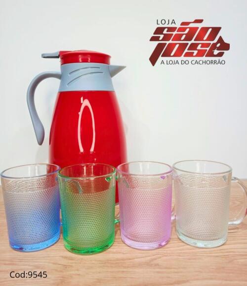 KIT GARRAFA TERMICA 1L + 4 CANECAS 190ML FRATELLI