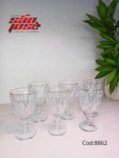 CJ 6 PÇS TAÇA FIO DE OURO 340ML KE HOME (88076)