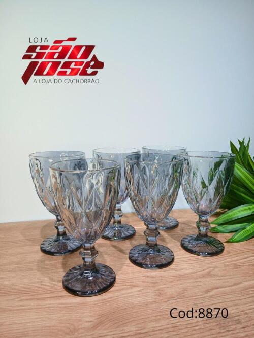 CJ 6 PÇS TAÇA DIAMOND CINZA 340ML KE HOME (88516)