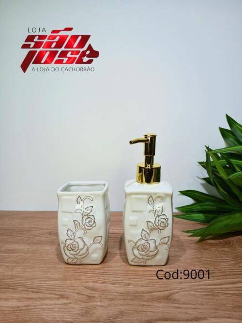 KIT BANHEIRO 2PC CERAMICA ROSAS 260ML (WX11073)